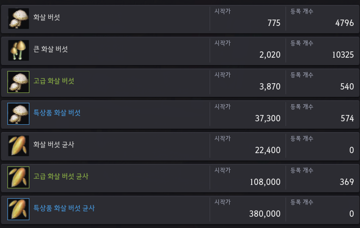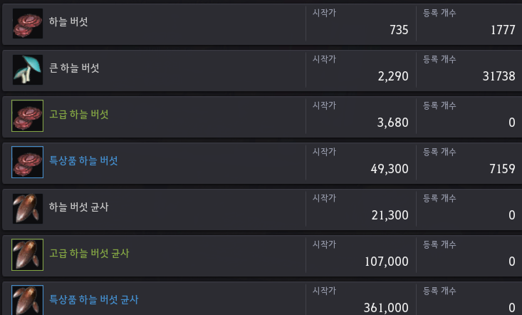 NPC가 파는 버섯을 거래소에서 구매하면